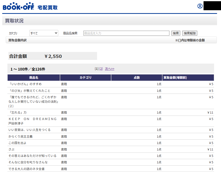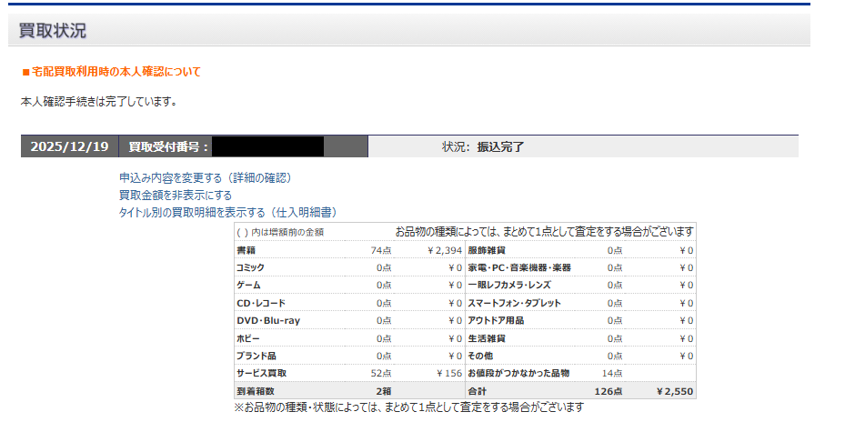 また、過去に利用した別の宅配買取サービスでは、本以外にも結構値打ちがある物もデッカい段ボールいっぱい入れたのに「178円」というビックリな安さで買い取られたことがあるので、むしろ思った以上に値段がついている気がします。